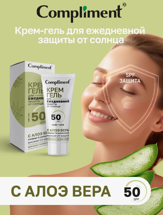 Крем-гель для ежедневной защиты от солнца Compliment SPF 50 с алоэ вера, 50 мл купить в Бобруйске по доступной цене